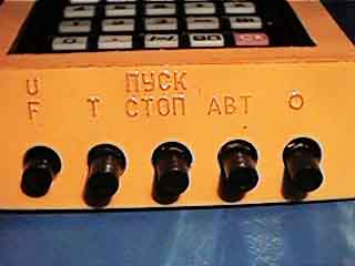 При отжатой первой клавише комплекс по первому и второму каналу измеряет напряжение, а при нажатой - частоту. При нажатой второй клавише (независимо от положения первой) комплекс измеряет интервалы времени. Третья клавиша - "пуск"-"стоп". При измерении напряжения или частоты в ручном режиме на эту клавишу нажимается один раз "пуск", а при измерении времени задается интервал времени первым нажатием "пуск" и вторым - "стоп".