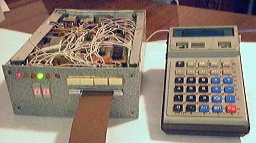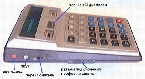 Второй режим - автоматический старт программы через некоторое время после ее остановки в промежуточной точке. Это делает работу с некоторыми програмами более удобной, избавляя от постоянного нажимания на кнопку С/П. За время паузы можно неспеша проанализировать содержимое индикатора, или переписать его на бумагу. Управление длительностью паузы и включение этого режима производится переменным резистором с совмещенным выключателем. Он установлен на противоположной боковой стенке МК, и на этом рисунке не виден.