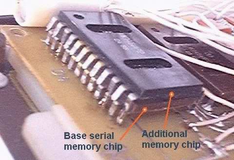 Дополнительный регистр припаян сверху. Питание и тактовые сигналы он получает прямо с выводов основной микросхемы. Справа под проводами виднеется вторая из штатных ИМС программной памяти.