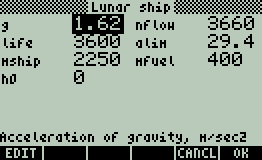 На предыдущей прогулке мы выразили почтение авторам классической программы и получили достаточно простую и понятную модель симулятора полёта вблизи лишенных атмосферы планет. Однако, статичность расчетов делала симулятор похожим скорее на учебный пример, чем реалистичную игру. Попробуем добавить динамики с помощью HP-50g и встроенного в него языка RPL.