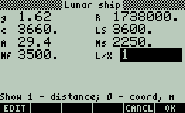 Пришла пора усовершенствовать математику полёта и собрать наш симулятор из трех частей: основного цикла "реального" времени для взаимодействия с пилотом лунолёта, расчетного блока и блока вывода графической информации. Для работы нам понадобится ПМК типа HP 50g/49 (с небольшими переделками программа пойдет и на 48g) или его эмулятор, например, уже упоминавшийся Debug4x.