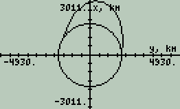 Теперь обратите внимание на кружок, разделяющий ряд на блок координат и остальную телеметрию. Кружок показывает Луну, а точка - текущее положение корабля согласно углу "гамма" (высота в расчет не принимается). По мере увеличения "гаммы" точка будет вырисовываться в дугу, потом в окружность. Окружность будет означать выполнение полного витка вокруг планеты. Для детального просмотра орбиты существует соответствующий режим, войти в который можно нажав кнопку "J".