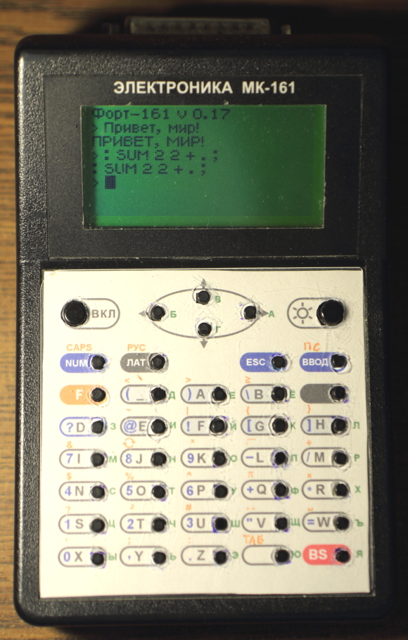 Вчера я опубликовал накладку для МК-161 с алфавитно-цифровой клавиатурой, которую использует этот интерпретатор Форта.